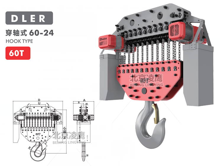 產品名稱:60噸DLER環鏈電動葫蘆穿軸式